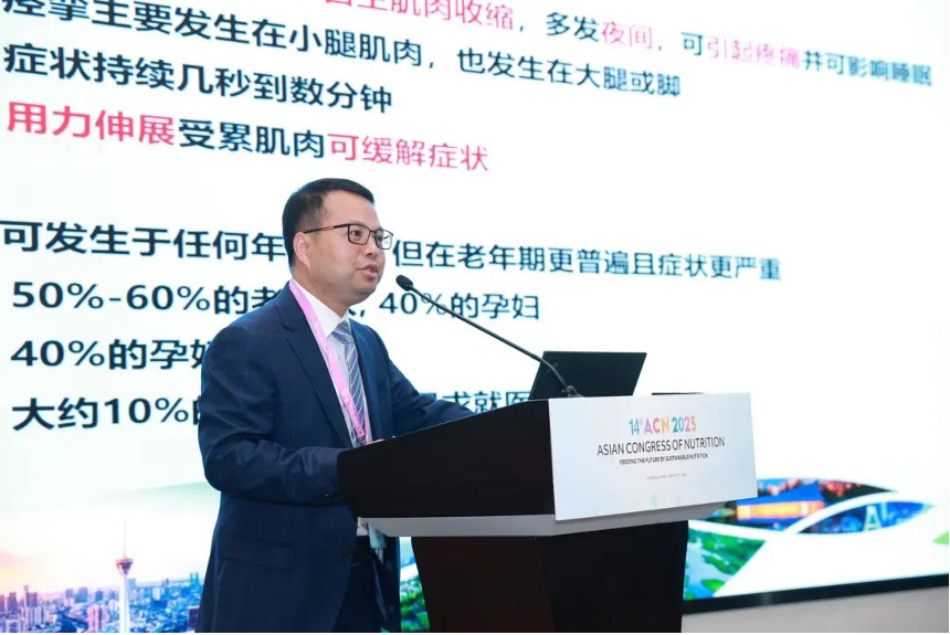 西南交通大学附属医院、成都市第三人民医院血液科谭竞主任以《维生素 K2 对夜间腿部肌肉痉挛防治的探索》为主题进行分享。谭竞主任认为,夜间肌肉痉挛是十分普遍的现象,是导致老年睡眠质量低下的重要原因,我们需要对该症状采取安全有效的干预措施,而补充维生素K2正是有效的手段之一。维生素K2能够对肌肉钙离子内流产生抑制效果,有效抑制肌肉痉挛,同时,维生素K2具有很高的安全性,值得进行大范围的临床研究。