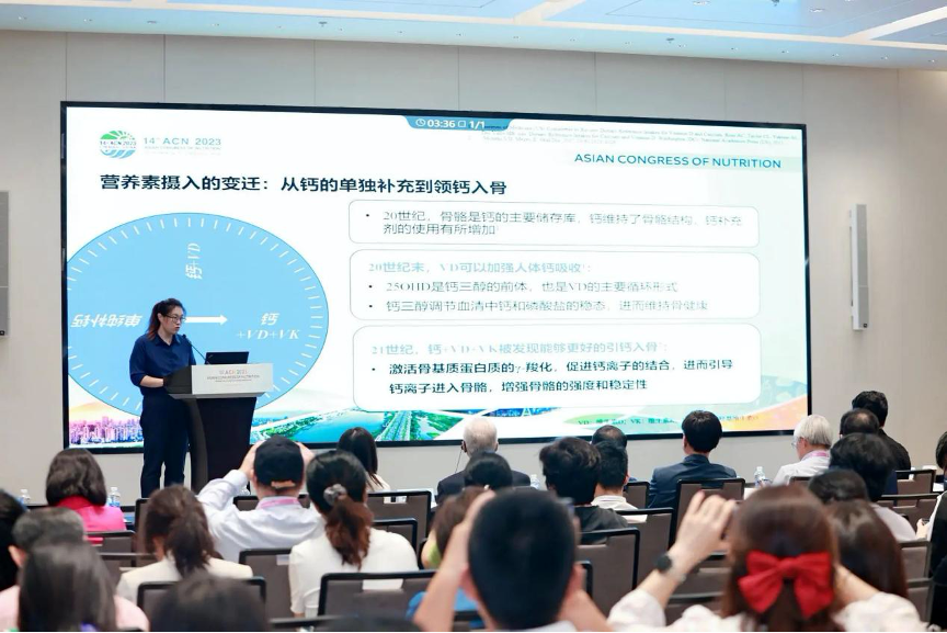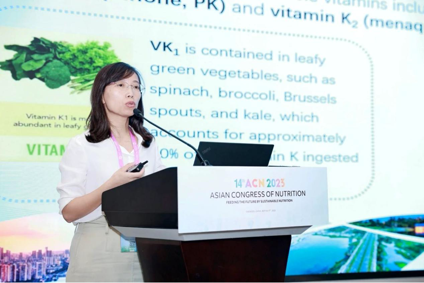 哈尔滨医科大学公共卫生学院院长李颖教授作了以《补充维生素K2通过肠道微生物组和粪便代谢产物改善2型糖尿病患者受损的血糖稳态和胰岛素敏感性》主题的研究报告,报告指出,维生素K2可以通过肠道菌群和共代谢物改善糖尿病患者的血糖控制和胰岛素敏感性,改善糖尿病患者的血糖状态,稳定患者的相关健康指标。