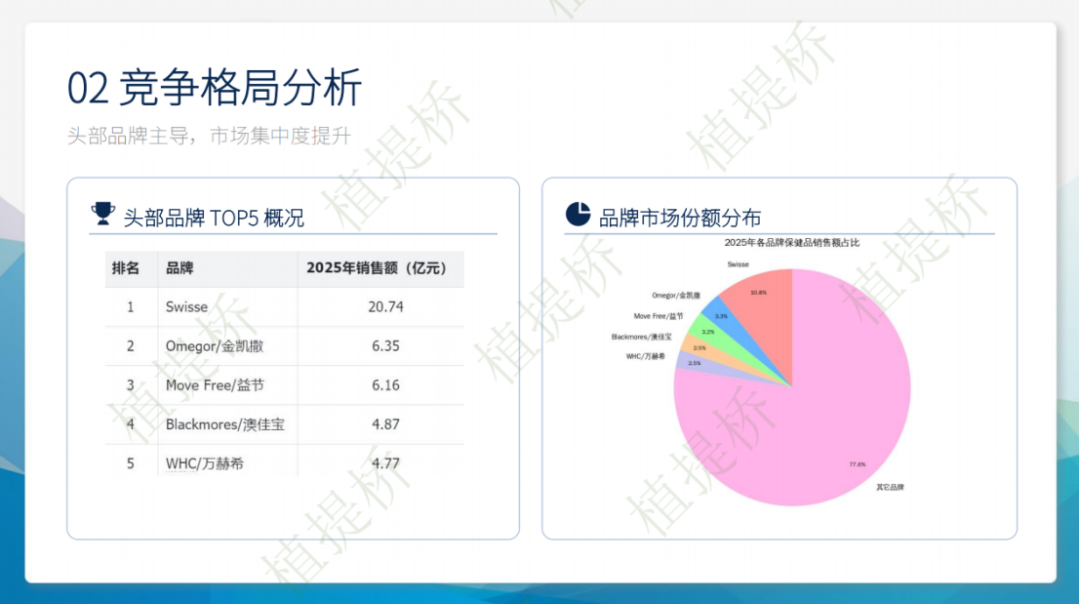 在竞争格局方面,国际知名品牌如Swisse、Move Free等占据主导地位,市场头部效应明显。这表明品牌力和产品力是赢得市场的关键,同时也为新品牌通过差异化竞争提供了机会。