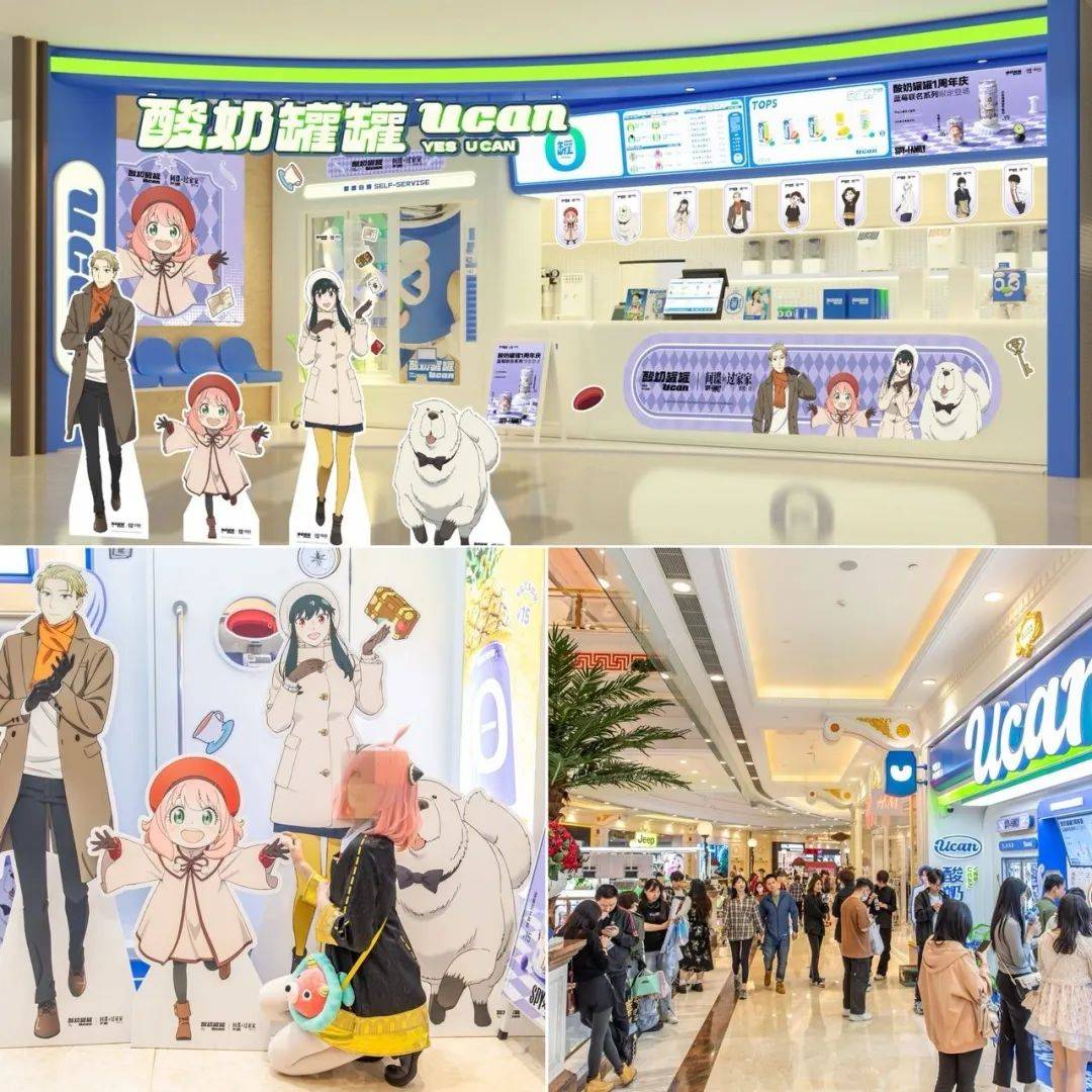 在一周年活动之际(5月1日~5月7日),联动当红的动画IP《间谍过家家 代号:白》,推出蓝莓芝士酸奶、花青蓝莓酸奶两款联名限定饮品,并打造一系列联名周边、主题门店,掀起抢购热潮。