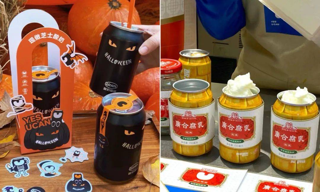 比如万圣节将小蓝罐应景“黑化”,与广合腐乳联名上新腐乳酸奶等,吸引了不少年轻人打卡分享。