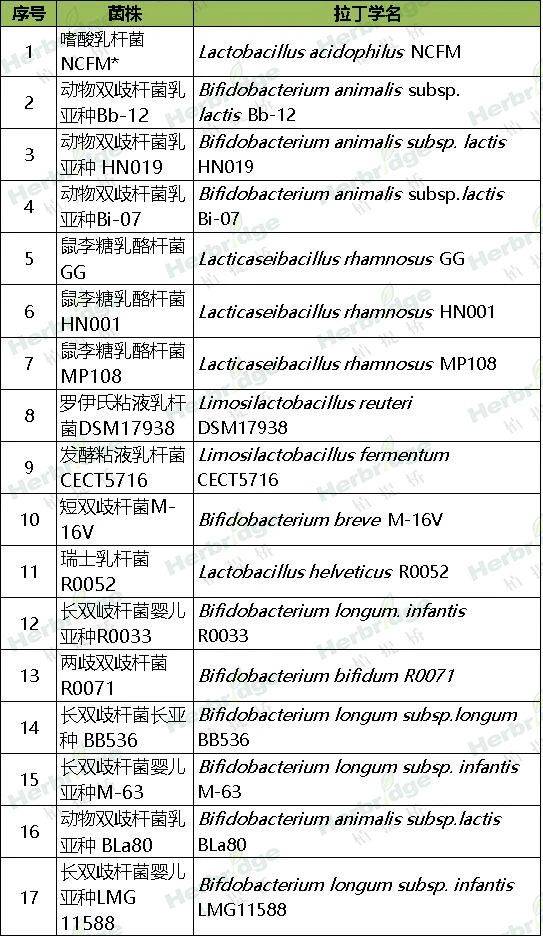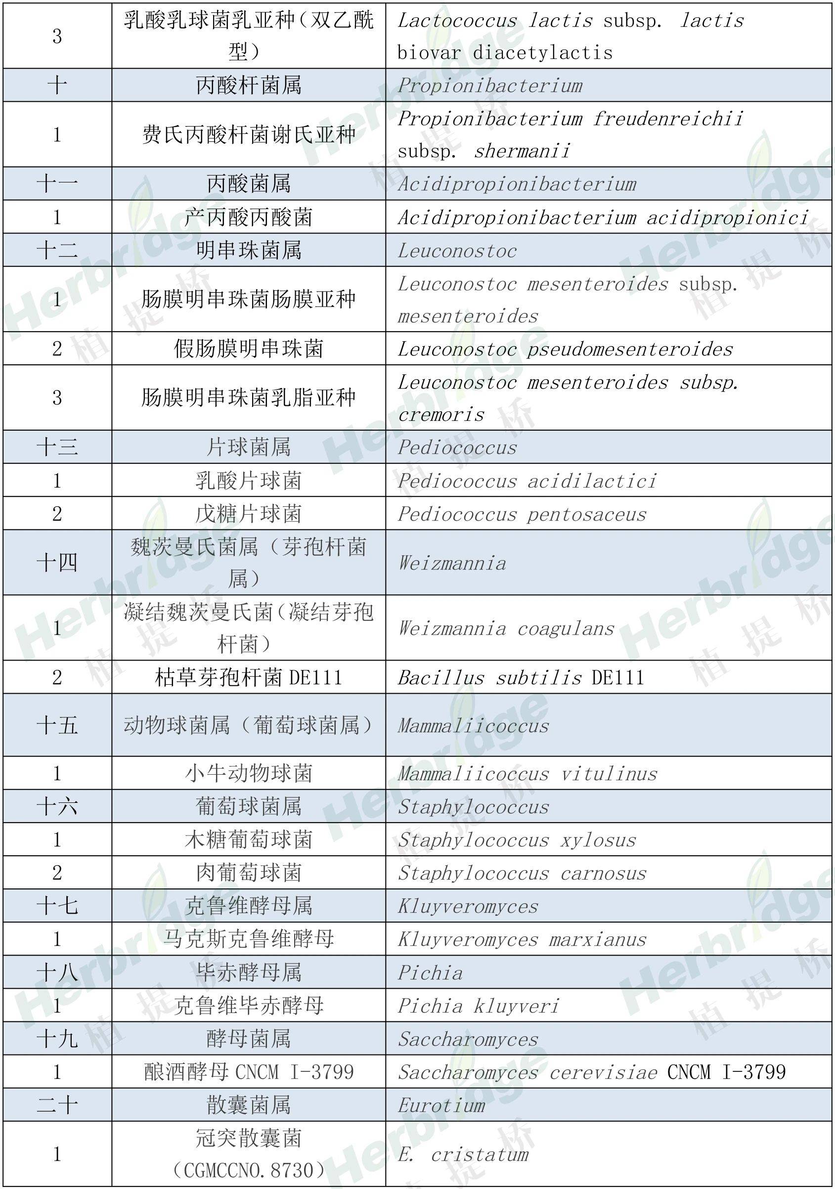 附表1 可用于婴幼儿食品的菌种名单(17种)