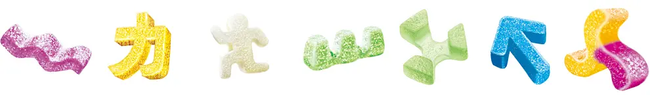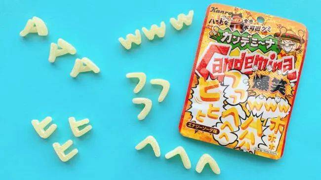 如2019年发售的“爆笑软糖”(カンデミーナグミ 爆笑エナジーソーダ),就将软糖做成了日语里的「ハ」「ヒ」「ヘ」「w」等模拟笑声的文字形状,将笑声“可视化”,不仅可以随意发挥摆出不同的”笑声“,不同形状的软糖口感也不相同,以可吃可玩的趣味性一扫夏日酷暑带来的忧郁心情。