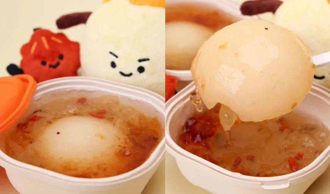 沪上阿姨的琥珀桃胶炖梨,选用当季皇冠梨慢炖半小时,桃胶慢炖出胶,再搭配甘醇清香的茉莉针王,辅以银耳、红枣,主打健康滋补。