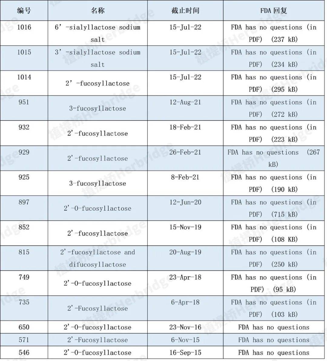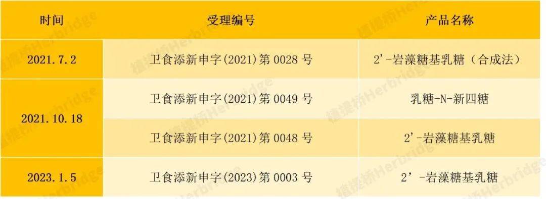 表1:2’-FL国内食品添加剂新原料受理统计