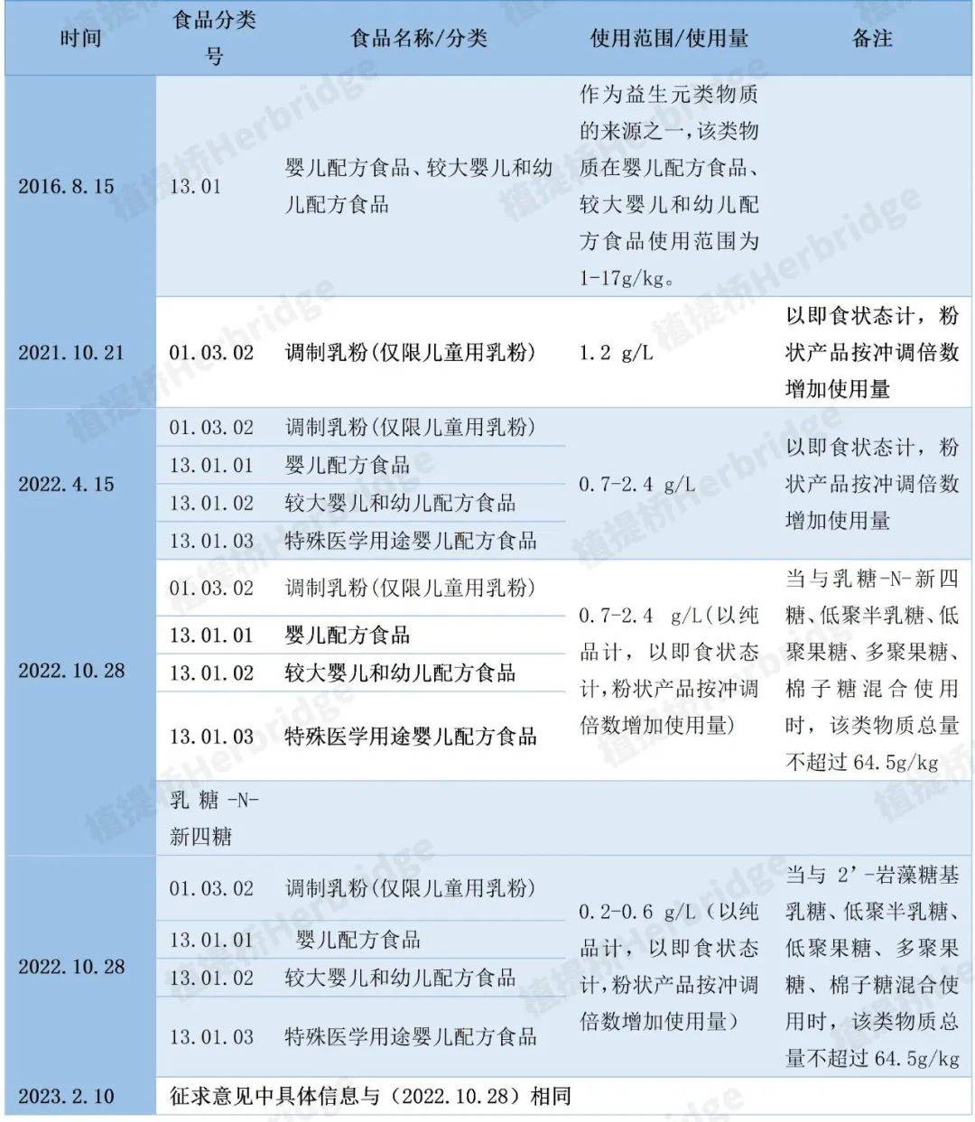 表2:2’-FL 5次征求意见及应用范围变化