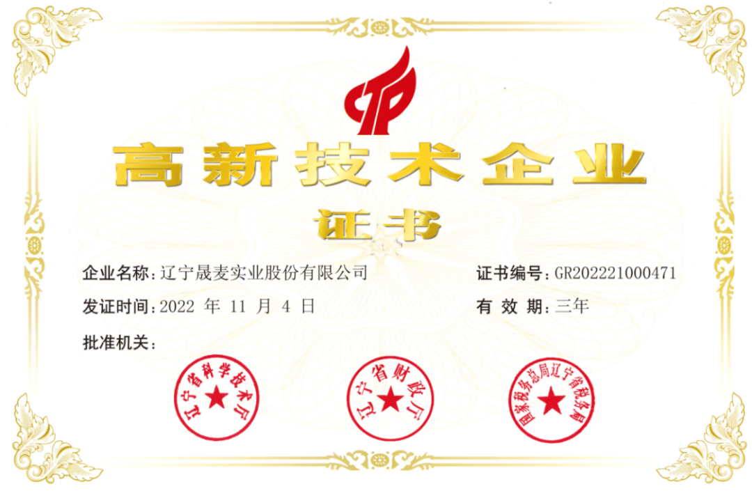 辽宁晟麦实业股份有限公司成立于1999年,2008年迁至本溪市高新区,为集生产、研发、销售一体的高品质营养油脂生产企业。是国家高新技术企业、国家知识产权优势企业、省专精特新小巨人企业、省瞪羚企业、省农业产业化重点龙头企业,具有省企业技术中心、省职工创新工作室、省博士后流动工作站等平台。全球率先通过GMP认证的营养油脂企业,具有FSSC22000、ISO9001及中美日欧四国有机产品等15项认证。