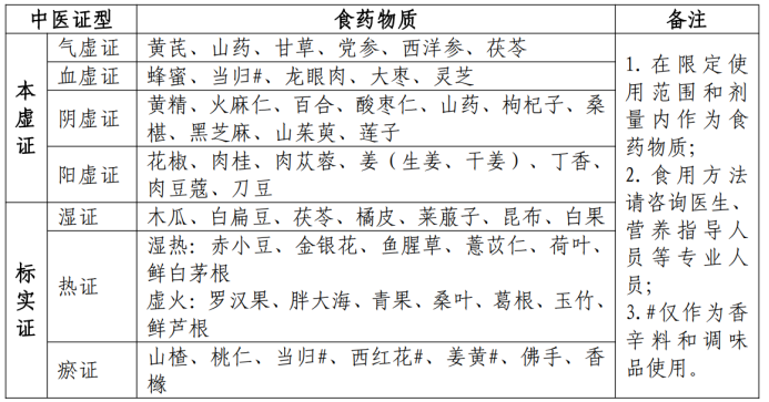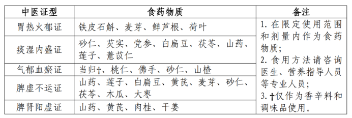 高尿酸血症与痛风不同证型推荐食药物质及新食品原料