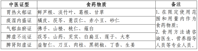 儿童青少年肥胖不同证型食药物质推荐