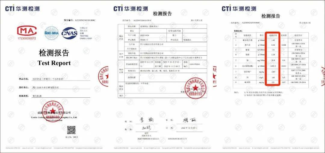 为了确保热量数据得到消费者的信任,霸王茶姬还将产品送至国家认可的第三方权威检测机构“华测检测”,并将检测报告公开给消费者查询。