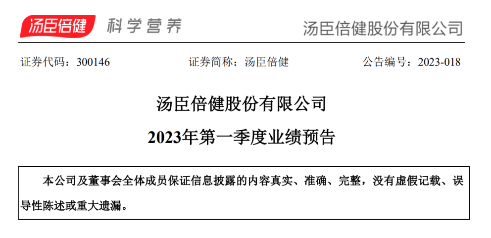 4月3日,汤臣倍健发布2023年第一季度业绩预告。