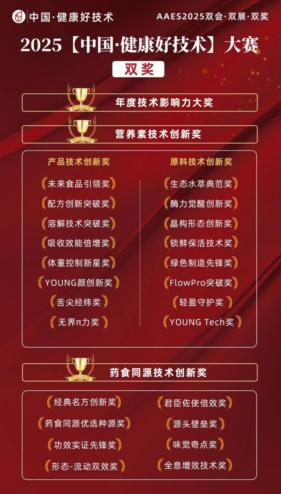 2025【中国·健康好技术】奖项设置!20+奖项,解锁营养健康产业创新密码!