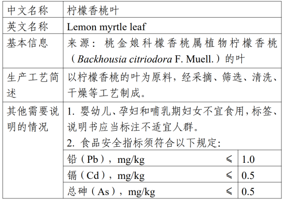 柠檬香桃主要分布于澳大利亚,其叶在澳大利亚和新西兰作为普通食品管理,欧盟作为传统食品管理,日本和韩国允许作为食品原料。