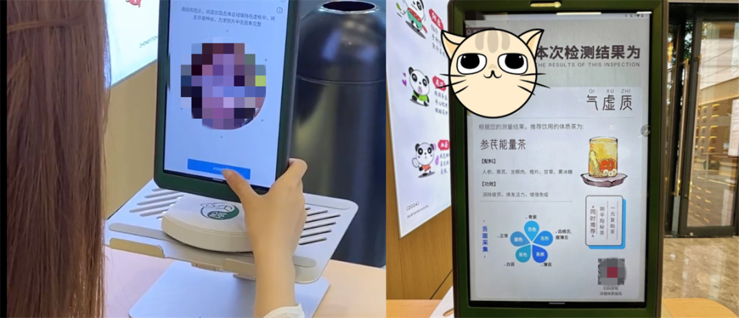 其实,除了南京的“鹊茶羽坊”,我还观察到,郑州的“春秋日济”养生茶饮也在门店里设置了“中医智能镜”,让顾客在喝茶的同时,体验智能化的“望闻问切”。