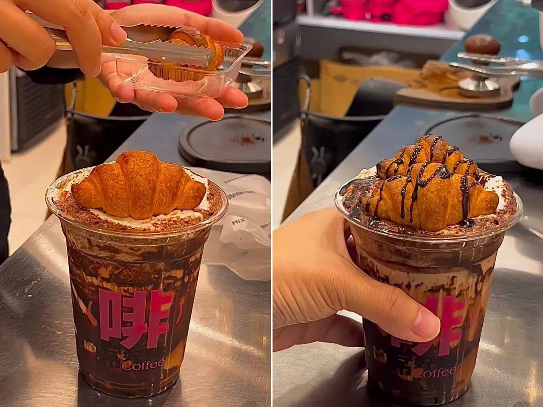 酥脆的可颂蘸上香浓的奶油,网友表示:“简直是神仙喝法”“一杯下去全是满足”。