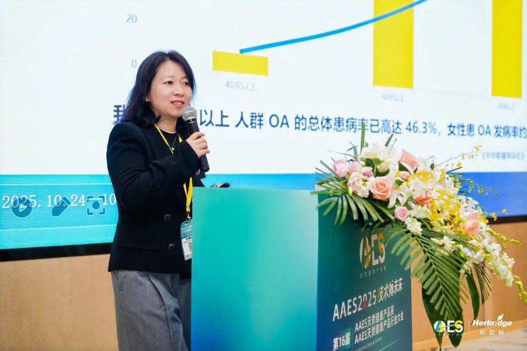 海南华研胶原科技股份有限公司副总经理兼研发中心总经理赵子方分享《解码胶原蛋白肽:多维度守护骨关节健康的科学逻辑》,海南华研拥有五大生产基地和五大销售中心,专注于胶原蛋白肽的研发与应用,年产能超6500吨,产品出口50多个国家和地区。华研依托定向酶切等技术,开发出非变性II型胶原蛋白、软骨肽、牦牛骨肽、海参肠肽等多肽产品,全方位骨关节保护。