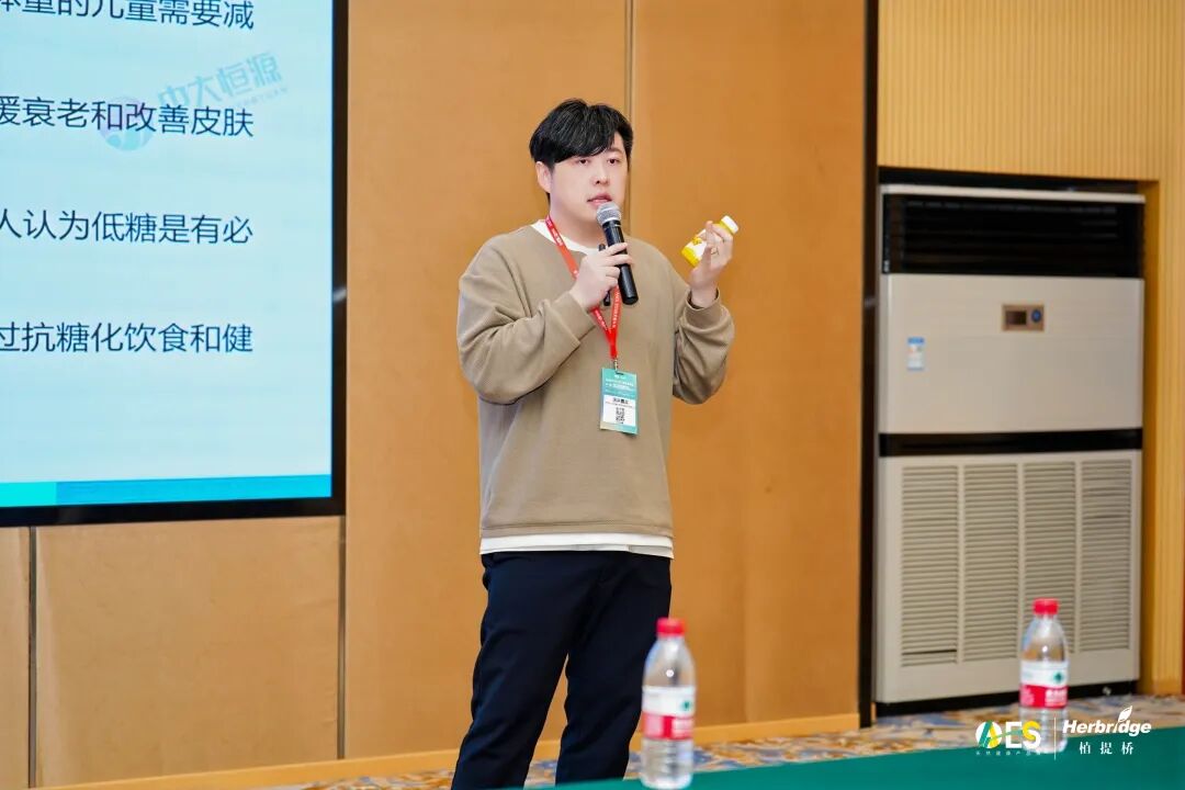 河南中大恒源生物科技股份有限公司总经理金子恒分享《D-阿洛酮糖掀起新一轮代糖革命:说说中大恒源的解决方案》,D-阿洛酮糖的甜度约为蔗糖的70%,热量约为蔗糖的10%,升糖指数(GI)接近0,2025年7月已获批为新食品原料。
