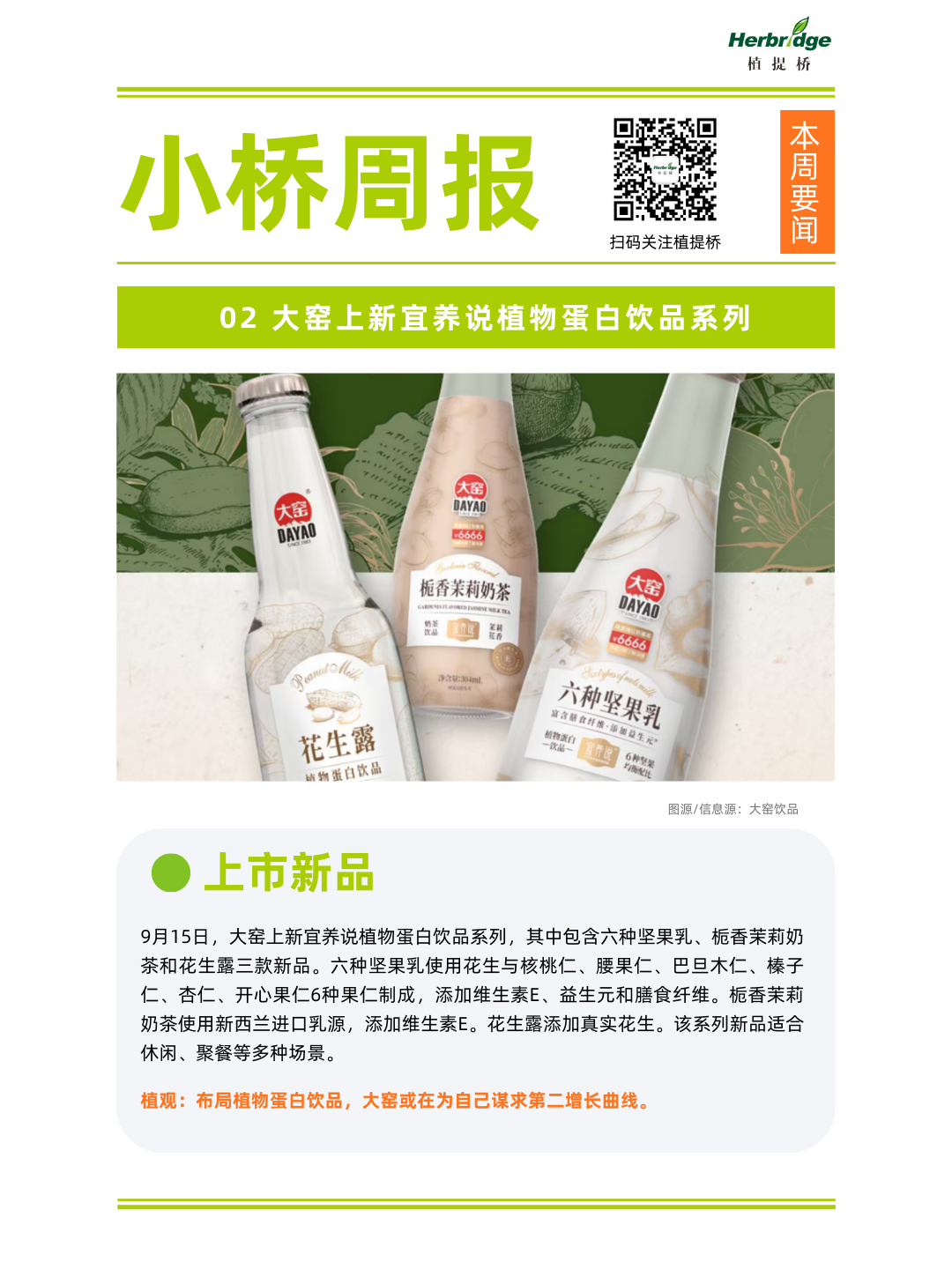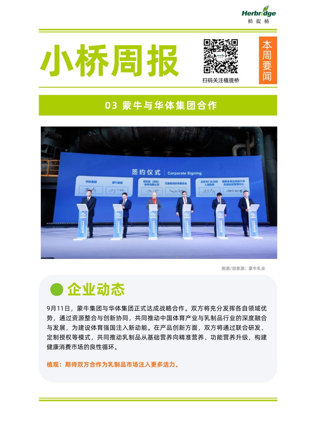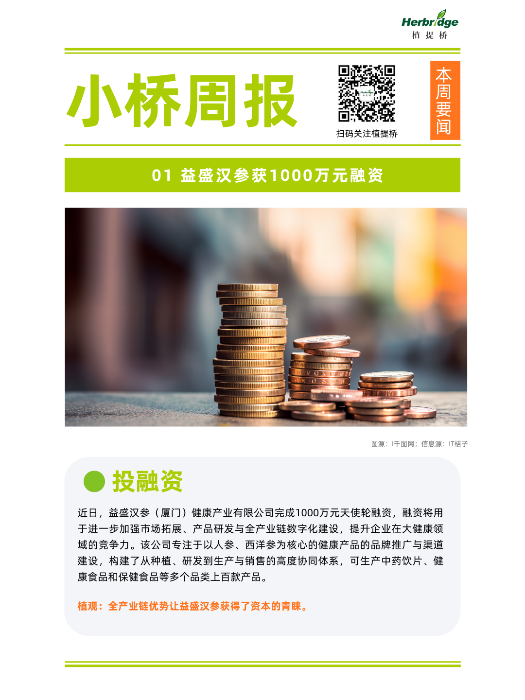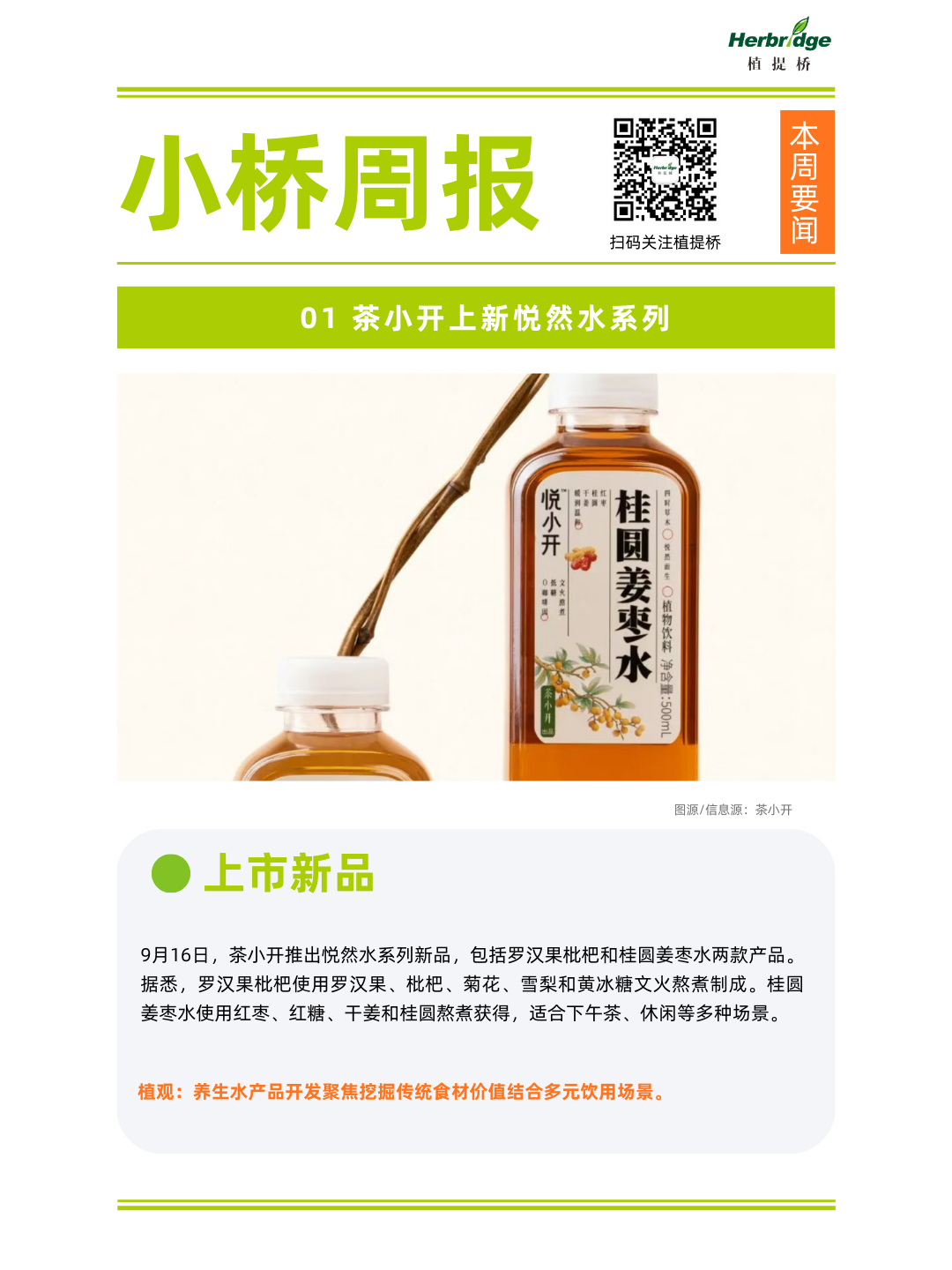 一周要闻|3种新原料终止审查;茶小开、大窑、盒马上新;中大恒源、仙乐健康、蒙牛新动态;益盛汉参获融资