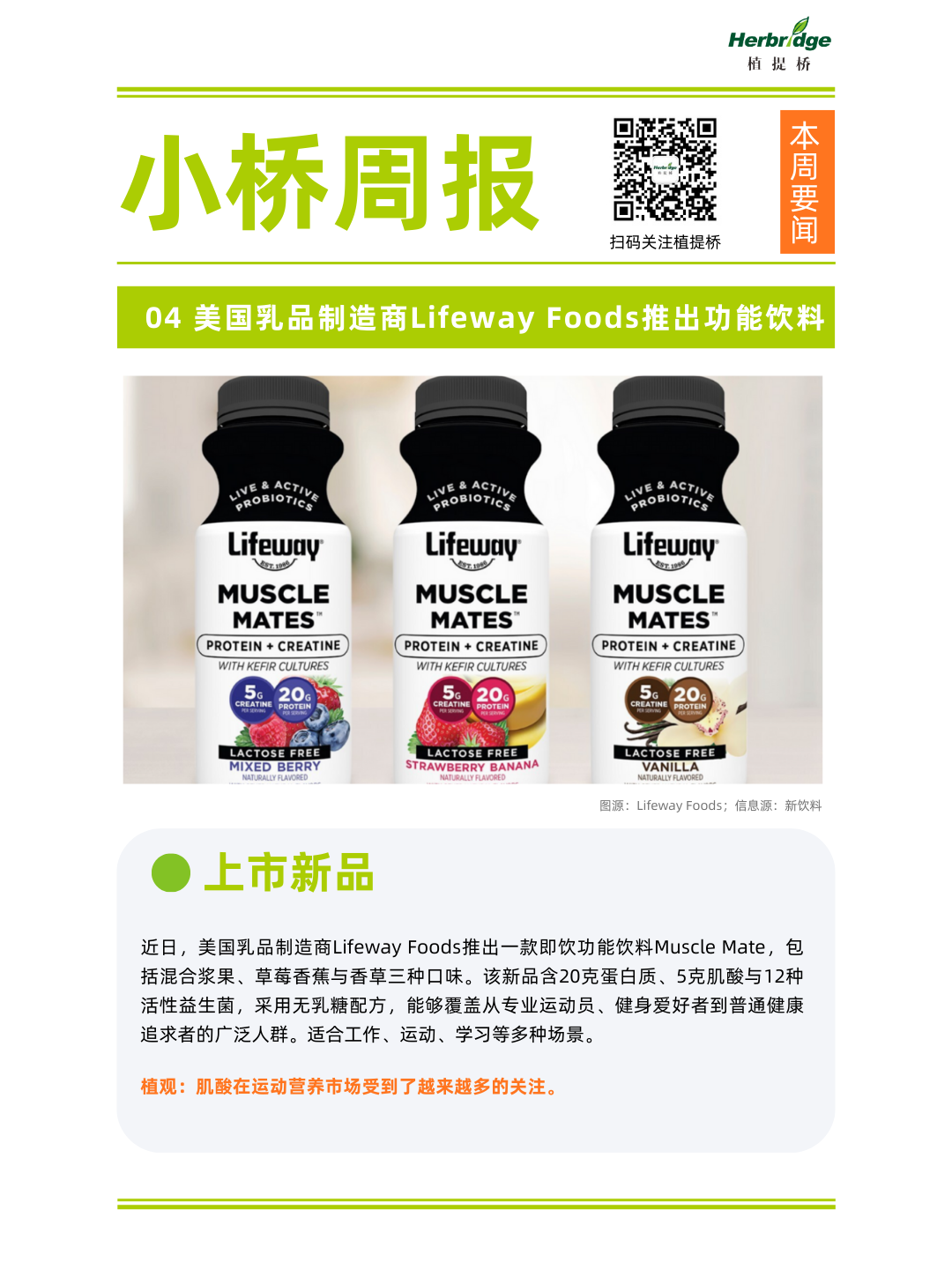 4、美国乳品制造商Lifeway Foods推出功能饮料