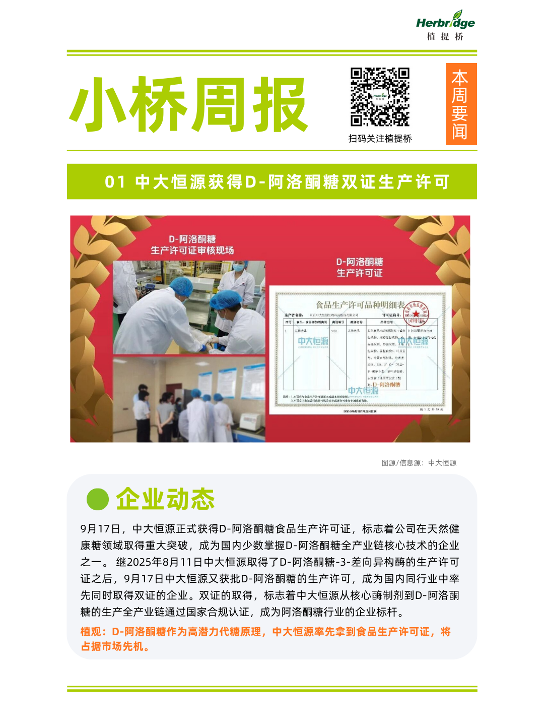 1、中大恒源获得D-阿洛酮糖双证生产许可