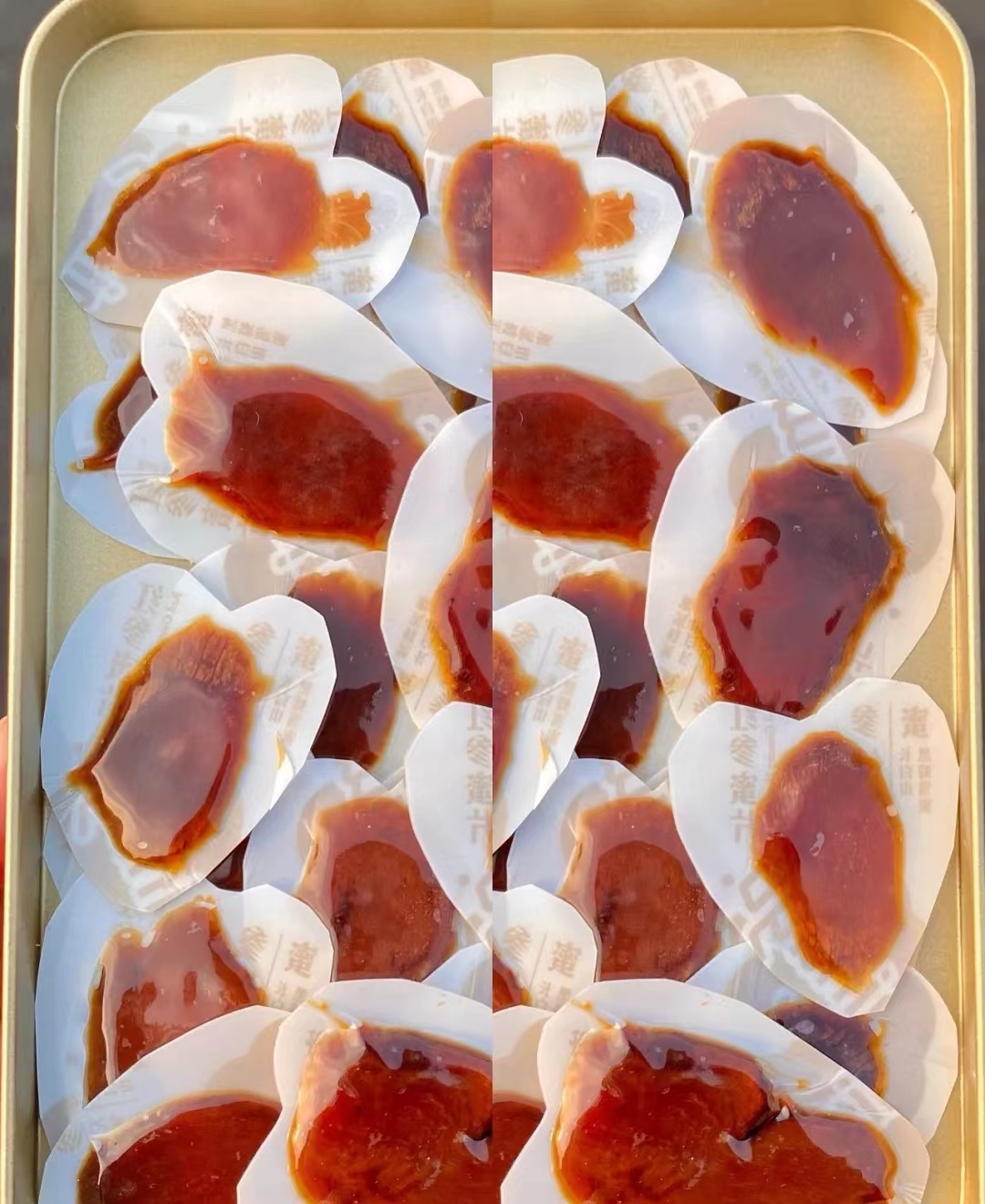 除了当菜品的配料,新鲜人参切成薄片也可以食用,比如将其泡进蜂蜜水中。有些商家针对这种吃法推出了人参蜜片,有网友评论可以当作养生低卡小零食,一天吃两到三片简简单单实现养生自由,甚至人参蜜片还被打上了熬夜脱发女孩必备的食品标签。