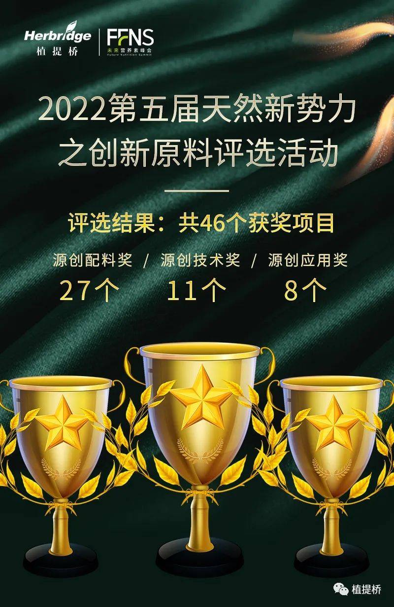 天然新势力之创新原料评选活动于2022年正式发起,同时植提桥对第五届天然新势力评选活动进行重磅升级,划分为上半年创新原料评选,下半年创新产品评选,两个面向不同企业类型的活动。活动旨在发掘、发现、展示行业内具有创新力的原料和产品,树立行业标杆性企业和优质产品,彰显天然健康产业创新风貌,助力行业的创新和发展。