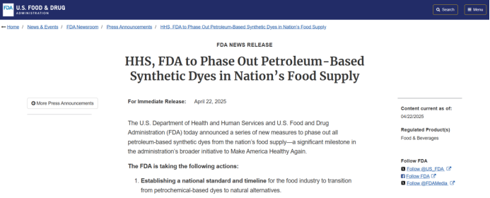 2.HHS, FDA to Phase Out Petroleum-Based Synthetic Dyes in Nation’s Food Supply