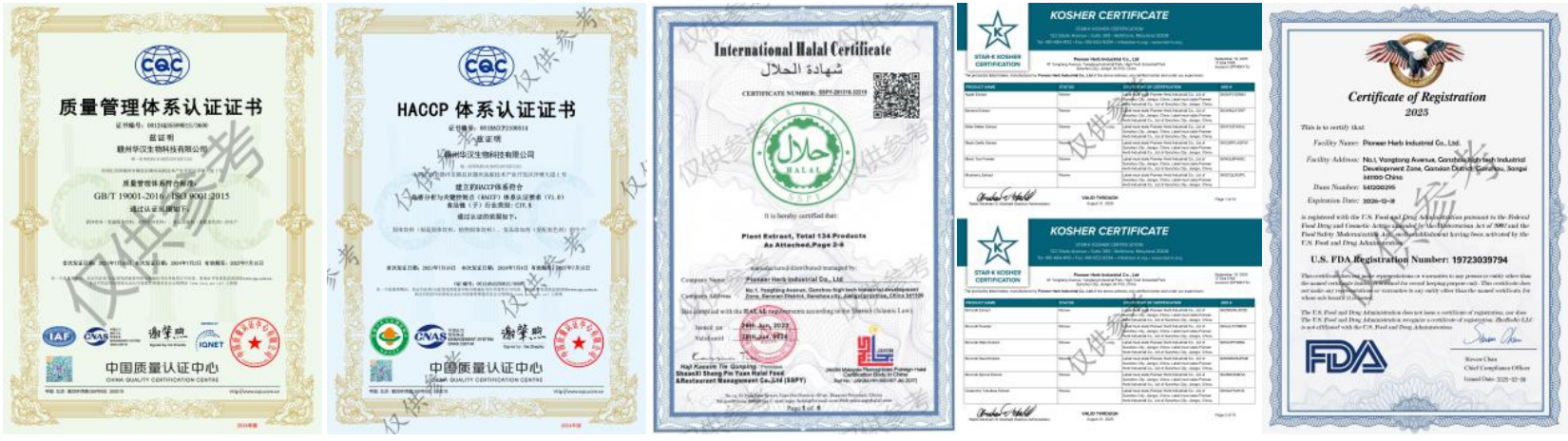 多年来,华汉生物已获得食品生产许可证,跻身高新技术企业和专精特新企业行列,并获得了国内外多项认证,包括 ISO9001、HACCP、HALAL、Kosher 以及美国 FDA 备案等。公司具备自主进出口经营权,产品畅销美国、日本、加拿大及欧洲等多个国家和地区。