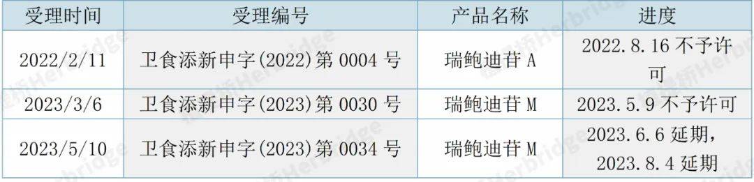 卫健委官网显示,瑞鲍迪苷A、M多次被受理,可见它技术创新和上市推进的热度。