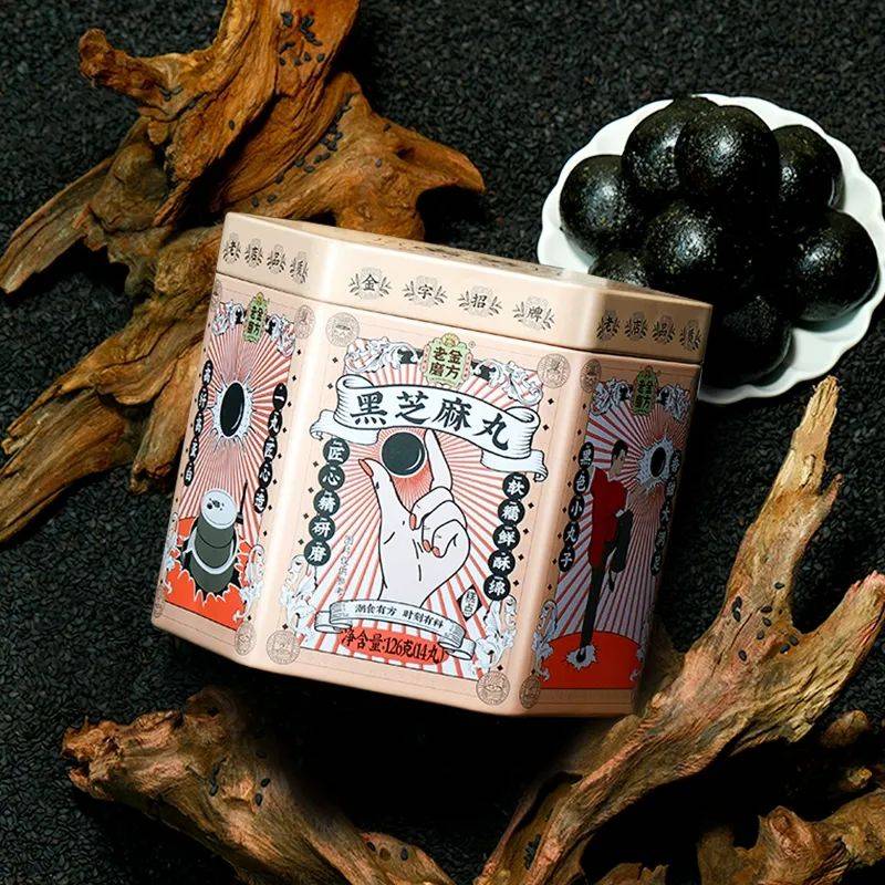 如已完成两轮融资,累计融资金额达数亿元的新中式健康零食品牌“老金磨方”,就以“老金磨方黑芝麻丸”这一大单品收获了无数消费者的喜爱。提到黑芝麻,大家自然就会想到健脾生发、养心安神等疗效,市场教育门槛较低,但同时,无论是自己在家制备黑芝麻系列产品,还是到药店购买黑芝麻方剂,都是能够劝退用户消费的理由,即使是各大商超中均可轻易买到的黑芝麻糊,仍需消费者冲泡后方可食用,对食用场景的要求较高,而老金磨方的黑芝麻丸则完美解决了用户痛点。