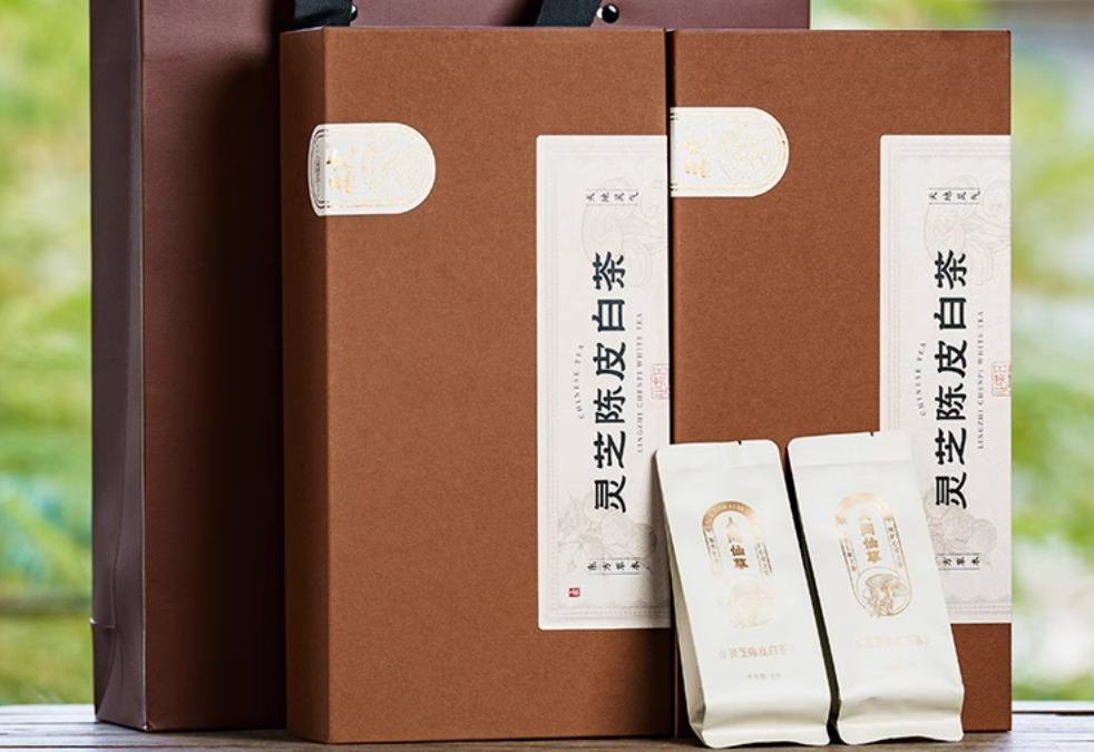 产品特点:灵芝与陈皮和白茶的组合,将灵芝变成了茶饮进行引用。
