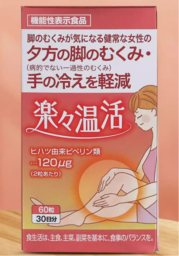 日本明治药品推出的机能性食品荜茇消寒片主要面向的就是体寒女性群体。主要含荜茇提取物、植物油脂、维A、维E、维D等。