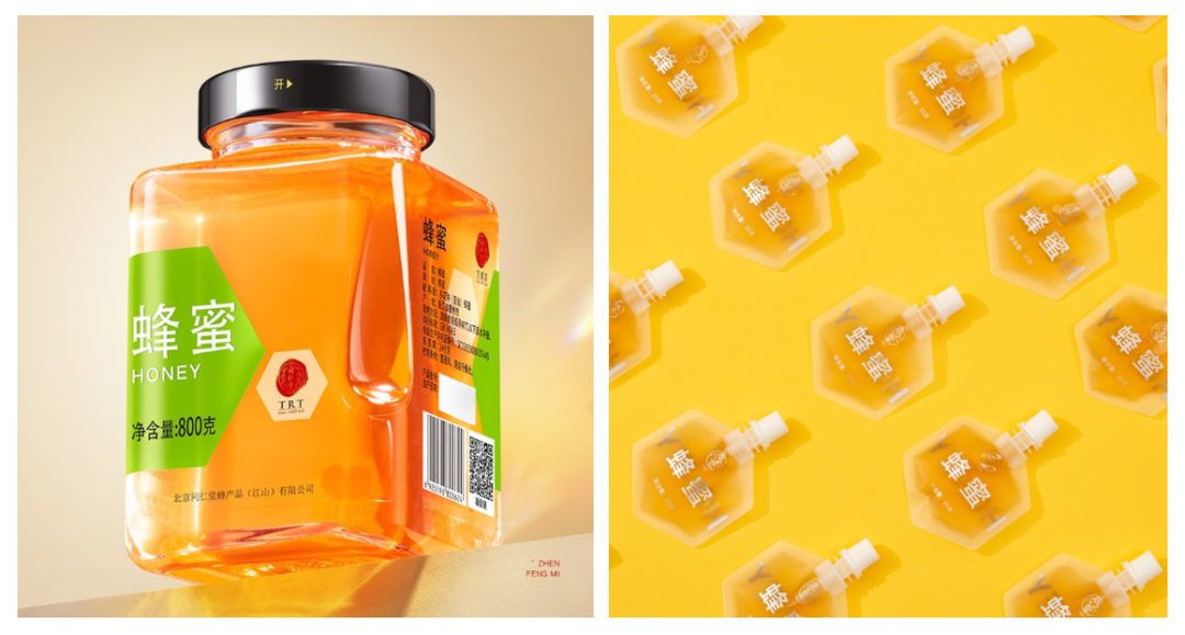 左图为传统的罐装蜂蜜,右图为吸吸蜜