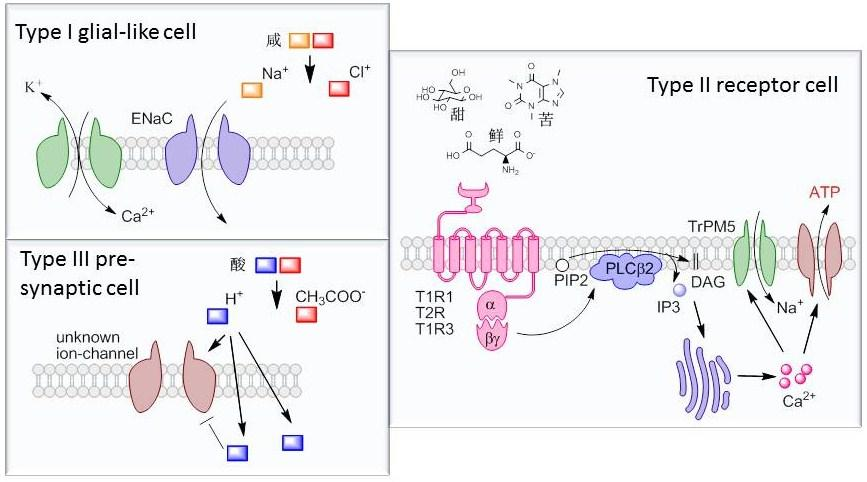 盐最明显的特点为咸味。研究显示,舌头感知咸味的原理如下:味蕾上的味觉细胞主要有三类,感受咸味的类胶质细胞、感受甜苦鲜味的受体细胞以及感受酸的前突触细胞。当食盐(NaCl)在口中溶解时,唾液将其中的钠离子带入味蕾感受细胞,激活神经元并将信号传输至中枢,进而产生咸味感知。