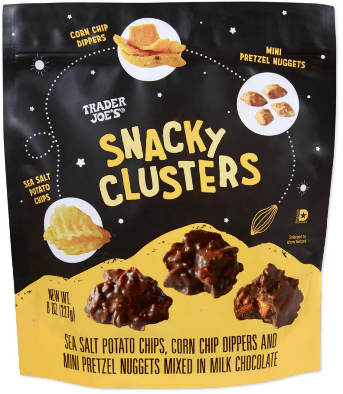 Trader Joe 推出一款由甜味和咸味成分组成的零食Snacky Clusters,产品由海盐土豆片、咸味玉米片和椒盐味薯片等咸味元素组成,每一片产品的表面覆盖一层浓郁的牛奶巧克力,旨在为消费者提供独特的风味体验。