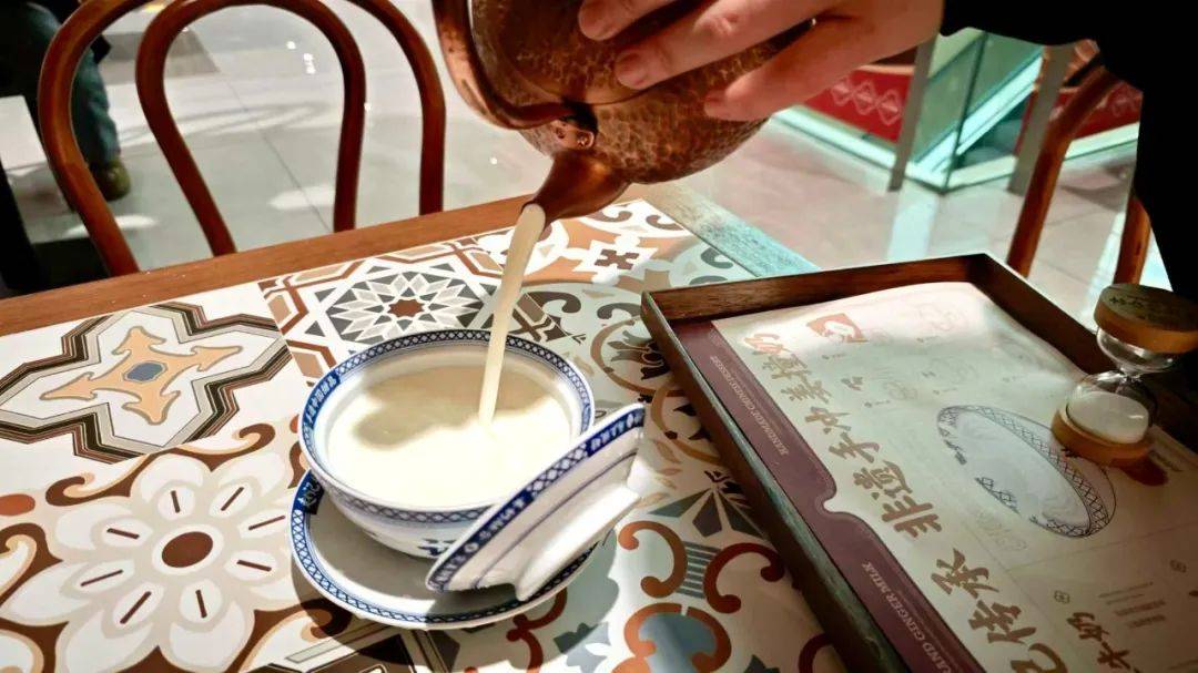 比如,赵记传承的招牌手冲姜撞奶,店员将原料端到消费者面前当面冲制,放置小沙漏倒计时3分钟后,消费者才能打开碗盖食用。