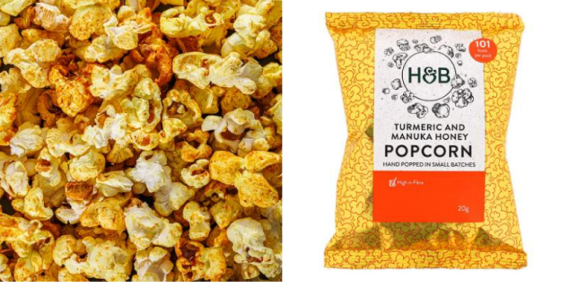 此外,英国Holland & Barrett还推出一款含姜黄和麦卢卡蜂蜜的爆米花产品,借助姜黄的健康认知与零食消费场景相结合,定位“更健康的零食”方向。