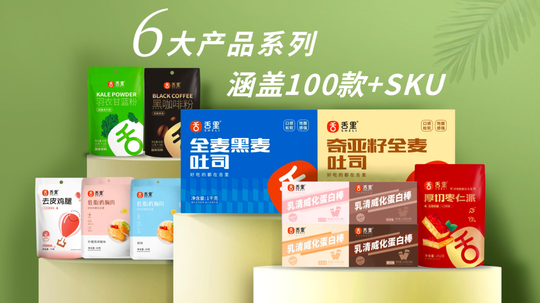 舌里以消费者为核心,推出六大品类,包括主食代餐、肉类蛋白、代餐佐料、轻卡零食、冲调饮品、健康零食等,涵盖100+SKU,满足多元化轻食需求。