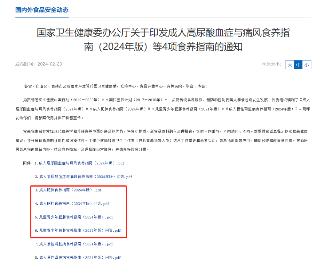 此前,国家出台一系列有关体重管理方面的文件,如《健康中国行动(2019—2030年)》、《儿童青少年肥胖防控实施方案》、《成人肥胖食养指南(2024年版)》、《儿童青少年肥胖食养指南(2024年版)》、《体重管理指导原则(2024年版)》等。