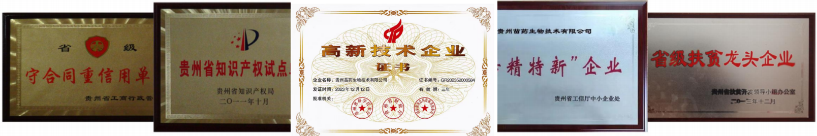 企业荣誉:公司已获“国家级高新技术企业”、“贵州省企业技术中心”、“贵州省创新型企业”、“贵州省产业化重点扶贫龙头企业”、“贵州省产业化经营重点龙头企业”、“贵州省知识产权试点单位”、“贵州省专精特新企业”、“定制药园”等称号。