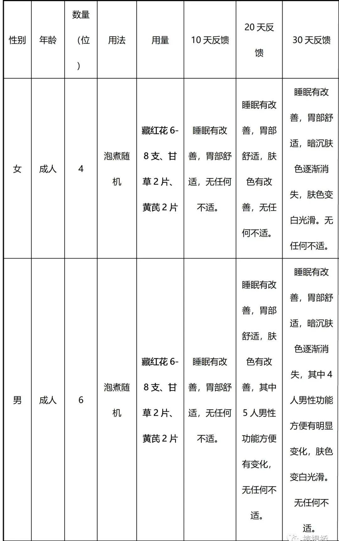 药食同源理念古已有之,该类物质因兼具药食两用的特点而常被用于医疗和养生,根植于我国传统中医药文化领域已有长达几千年的历史。与此同时,采用中草药进行美容养颜保健的方式也颇受重视,尤其近年来,随着人们生活水平的不断提高天然植物保健、养生等方面所占市场份额的不断扩展下,相关产品的推出已成为广大消费者极为青睐的对象。从饮食结构看南方很多家庭的煲汤必选品生姜、天麻、红花、当归、枸杞、甘草、益母草等等与食材小火慢炖的饮食习惯源远流长。但是随着人们生活节奏的加快、生活水平的提高不再局限于煲汤。功夫茶的逐渐普及让人们发现中药材已经不是固有记忆中的苦,还有香。品类和剂型丰富多样,为需求不同的顾客提供了大量选择空间,同时也在较大程度上展现了中草药的优势,符合人们崇尚天然物质的心理,因而在领域当中有相当稳定的落脚点。同时袋泡茶、花果茶、速溶茶应用而生吸引了大量资本的进入,却也导致了低价竞争,出品质量良莠不齐。中草药与茶的结合带来由内而外的“美”,成为了茶饮新风潮。更值得一提的是,植物药材资源的多样性是我国得天独厚的一大优势。在经过几千年的历史积淀之后,中草药的安全性已由无数前人先辈亲身实践,因而在科技发达的今天仍有口皆碑。并且,生长于这片土地上的中草药,作为天然的产物让人能够增添几分亲切感。但需关注到的是,由于法规的制约,中草药在健康产品的应用上受到一定限制。目前我国相关机构对于药物的把控力度较为严格,且检测费用较高,这在一定程度上降低了厂家们的生产积极性。另外,目前虽然国内保健茶类的研发有一定的成绩和影响力,但是也受到多重因素的限制,导致其始终不能提供一套更加全面和丰富的产品,要想在市场上拥有更大的占有率还需要在生产、检测等环节加以改进创新,才能有所突破。庆幸的是,无论国内还是国外,群众对于中草药的热情度都日益高涨。虽然中国对于产品的研发和技术领域仍然与发达国家存在差距,但不可否认的是,我国独特的中医理念和丰富的资源成为助长其发展的一大优势所在,自古流传至今的民族文化已经俨然成为现代工艺产品的有力力量,且在可预见的未来有良好的市场活力。而回归茶饮领域,品牌需要对消费者的理念和口感度要有精准的把控,随着国际之间交流的不断深入,有很多企业在自身原有科研成果的基础上借鉴了先进的技术与工艺,让产品的品质在各项标准上已经达到了一流水准。而在这种竞争激烈的形势下,将来也会有越来越多的主体成为该行业的一份子,力求在这块蛋糕中分一杯羹,进而促进相关产业和机构的完善发展,对整个领域的拓展起到推动作用。总体来看,药食同源类茶饮虽遇到调整,但整个行业在传统组方与现代工艺相结合的基础上未来的空间较为可期,无论是技术、经济还是文化方面,都占有鲜明的优势,因此对于同领域的竞争者来说既是一个机遇,又是一大挑战。而从消费者熟知的中药材维度切入,将是品牌名率先抢占市场的强有力的路径。选用藏红花6-8支、甘草2片、黄芪2片。以此为组合泡茶,煮茶喝。茶汤清澈透亮,色呈红金色,味甘,口感醇厚柔和。藏红花是亚洲西南部原生种,最早由希腊人人工栽培。主要分布在欧洲、地中海及中亚等地,明朝时传入中国,《本草纲目》将它列入药物之类:①《饮膳正要》:主心忧郁积,气闷不散,久食令人心喜。②《品汇精要》:主散郁调血,宽胸膈,开胃进饮食,久服滋下元,悦颜色,及治伤寒发狂。藏红花在中国浙江等地有种植。是一种名贵的中药材,具有强大的生理活性,其柱头在亚洲和欧洲作为药用,有镇静、祛痰、解痉作用,用于调经、麻疹、黄胆、肝脾肿大等的辅助调理。甘草记载于《神农本草经》中,列为上品,《名医别录》中称为“国老”级别,东北和内蒙都称为“甜草”。气微,味甜而特殊。甘草有补脾益气、润肺止咳、清热解毒和调和诸药等作用,因此甘草有“十药九草”的称呼。黄芪的药用迄今已有2000多年的历史,其有免疫支持、保肝、利尿、抗应激、血压控制等作用。以上述组方的方式胖瘦高矮随机选择10位喜好饮茶成人持续一月做调查分析。其中女性4位,男性6位。泡茶煮茶方式随机,分别于10天,20天,30天做调查分析表如下:从本次小样本的试验中可见,天然优质的藏红花6-8支、甘草2片、黄芪2片组方泡茶或煮茶的方式每天不定期饮用。对男性和女性在养生保养方面有明显的作用。特别是精神状态肤色的变化值得深入研究。对于此方我司将进一步加大研究力度。