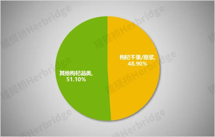 据植提桥“研产供销”数据显示,2023年淘系线上枸杞产品销售额为21.61亿元,其中以枸杞干果/原浆形式的产品占比近50%。