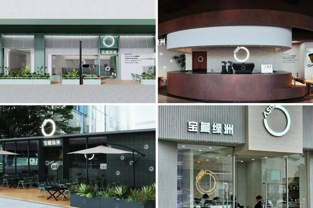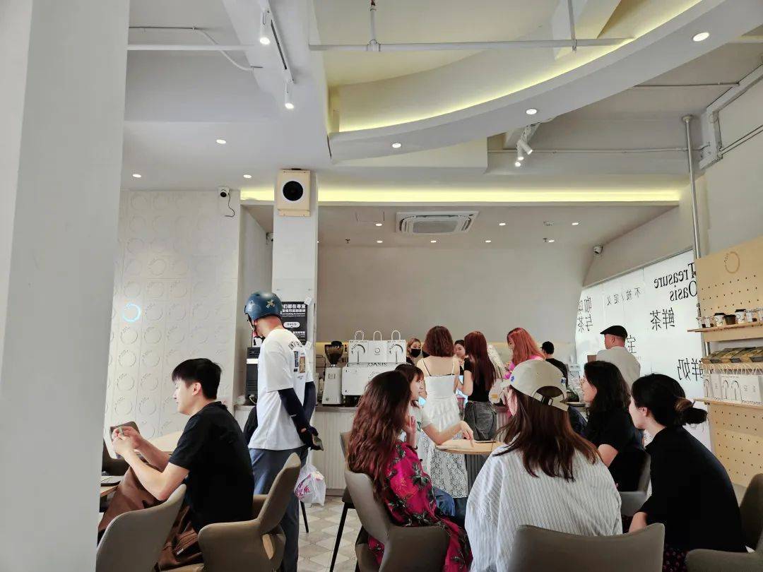 宝藏绿洲店型多在30平以上,不乏100平的大店,区别于奶茶连锁,品牌坚持一店一景,门头、点单区、座位区各有巧思,整体风格清新舒适,打卡属性强。