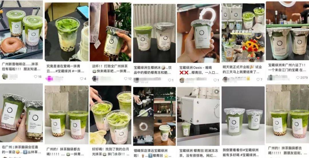 第一次关注宝藏绿洲,来自广州同事的晒图推荐:“排队两小时,一分钟空杯”、“款款好喝,两个月喝不过来”。