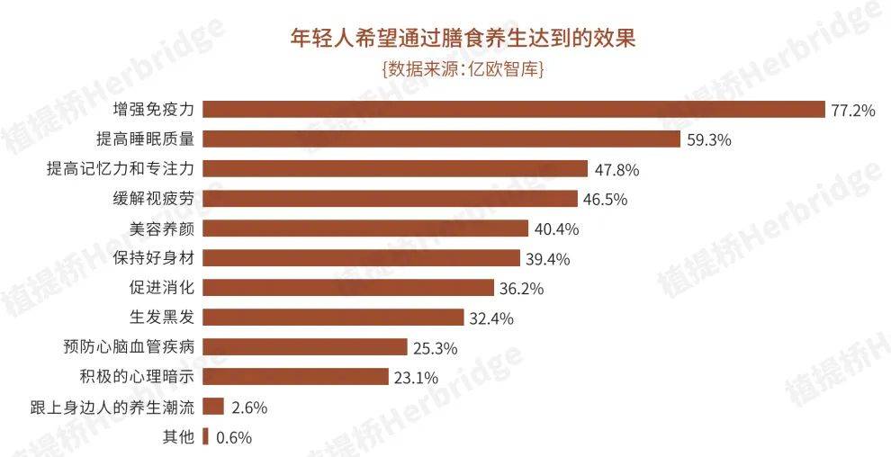此外,据亿欧智库的数据显示,年轻人希望通过膳食养生达到的效果中。提高睡眠质量的需求位居第二。可以看到,消费者对于睡眠质量的追求热情较高。这将为酸枣仁的发展和应用提供源动力。