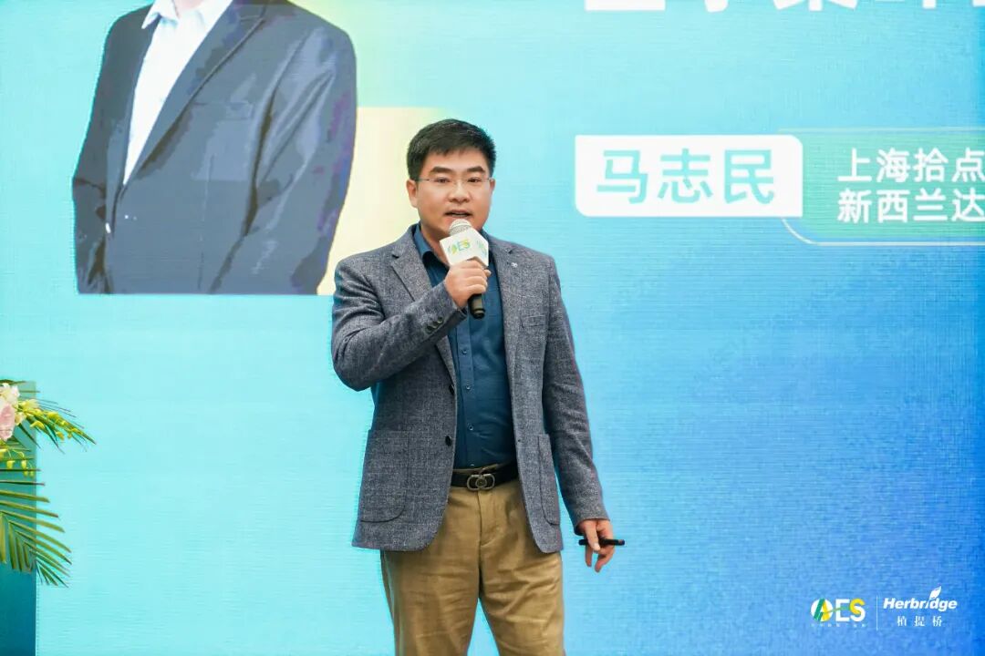 上海拾点壹健康科技有限公司创始人&总经理新西兰达维特精准营养研究院执行院长马志民分享了《嫘叶桑®盐亭桑叶产业开发及应用》,马总认为,未来药食同源的道路是大食品方向,并以盐亭桑叶为核心,详细介绍了盐亭桑叶的历史、地域产品属性优势以及产能、工艺、营养、健康研究、应用等。让现场观众深入了解了盐亭桑叶在大食品这一方向的应用潜力。