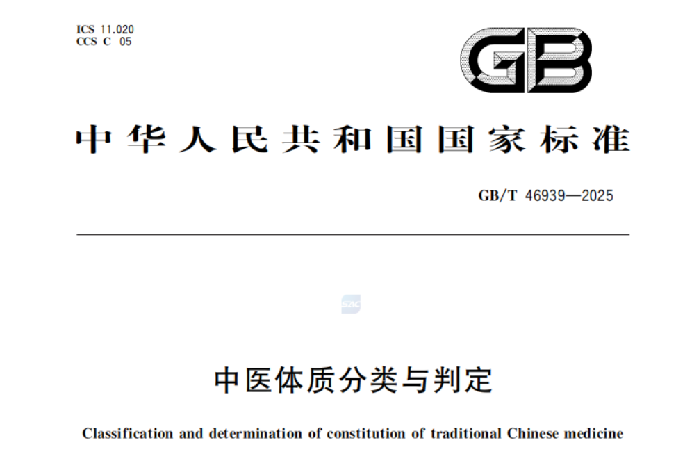 2026年4月1日,将执行最新版“九种体质分类与判定标准”。