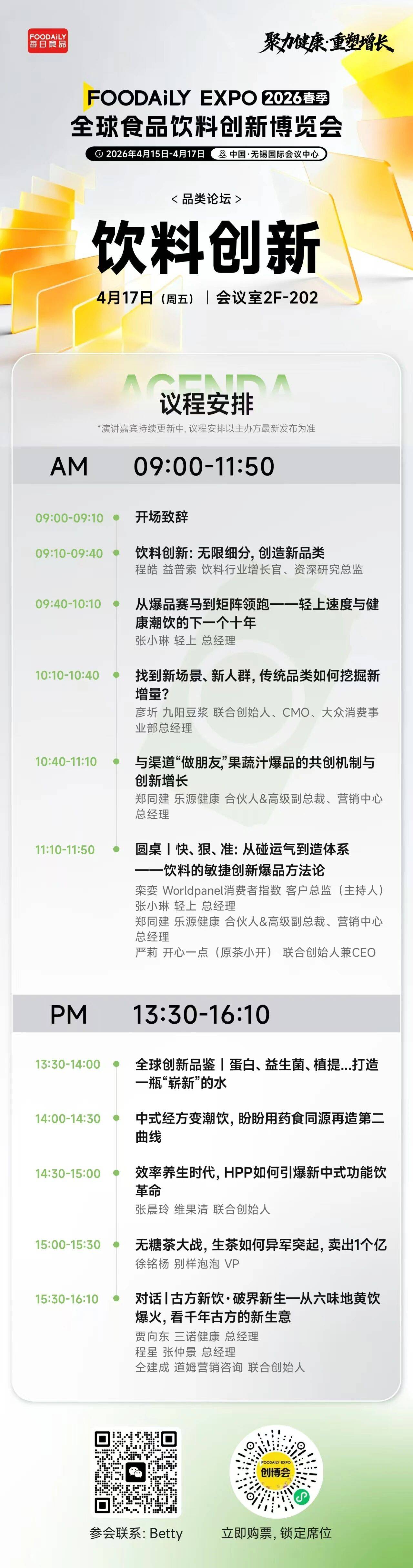 与此同时,渠道结构与消费热点的快速变化,也在倒逼品牌提升创新效率——从赌一个爆品,到构建持续造爆品的能力。哪些细分品类正在成为新的增长引擎?饮料品牌又该如何在高密度竞争中捕捉趋势、快速创新并放大爆品?本论坛将围绕品类创新、技术突破与爆品方法论,拆解饮料行业下一阶段的增长机会。