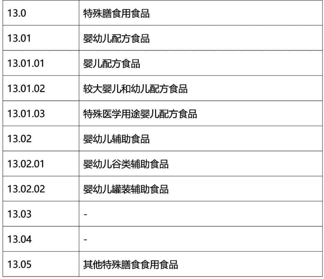 本次除了以上范围之外增加了特殊膳食食品(食品类别13.0)的应用。也就说在下表中的食品类别中都是可以添加肌醇这种功效原料。