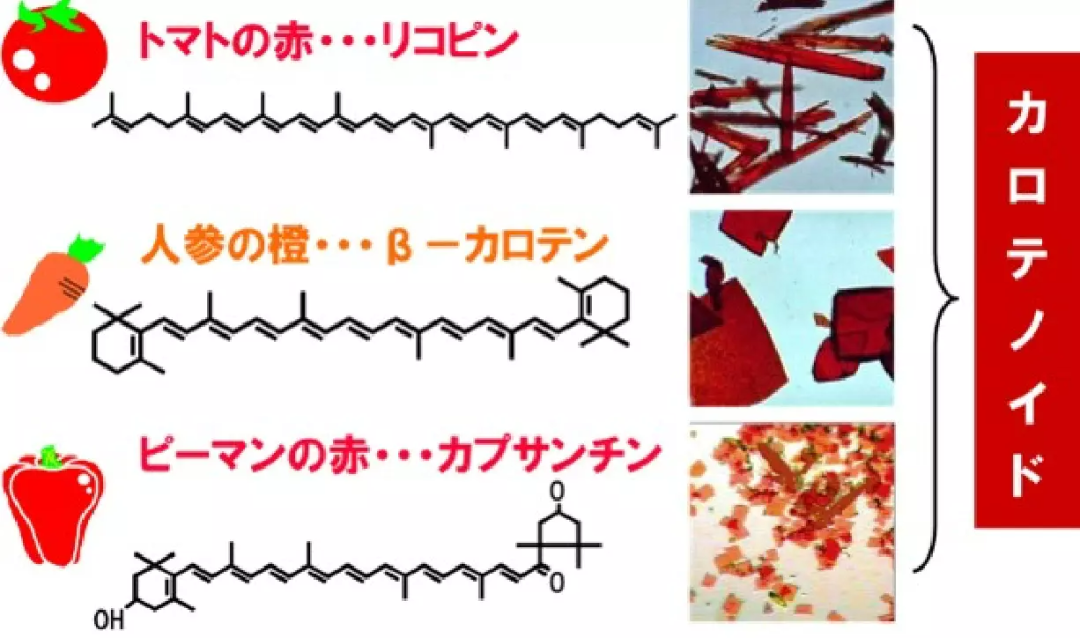 研究表明,当人体摄入蔬菜(尤其是绿色和黄色蔬菜)时,其中的类胡萝卜素被人体吸收,最终积蓄在皮肤中。类胡萝卜素通常具有很强的抗氧化作用(单线态氧清除),因此积极摄入有望产生健康效果。此外,一些类胡萝卜素(β-胡萝卜素、α-胡萝卜素、β-隐黄素等)与维生素A原具有相同的环结构,可以在体内转化为维生素A。因而,皮肤中的类胡萝卜素含量越高,蔬菜的摄入量就越高,代谢指数越健康。